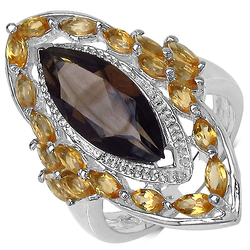 4.90 Carat Genuine Smoky Quartz & Citrine .925 Sterling Silver Ring