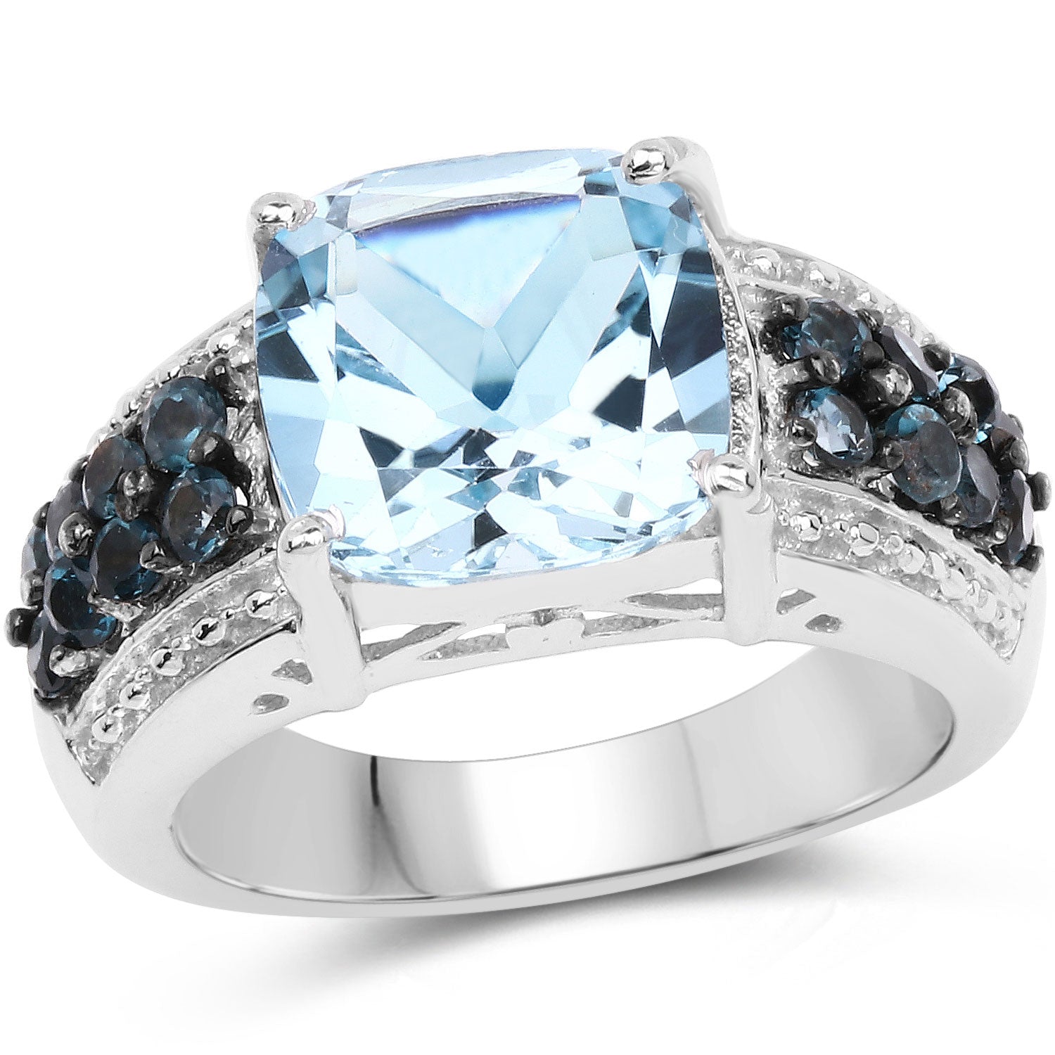 Topaz Blue:Cushion/10.00mm 1/4.40 ct.w