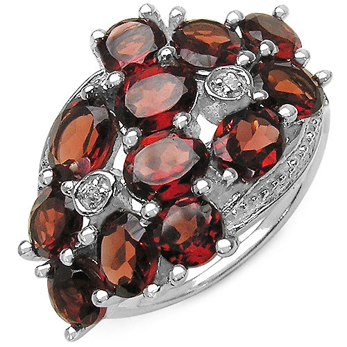 5.29 Carat Genuine Garnet & White Topaz .925 Sterling Silver Ring