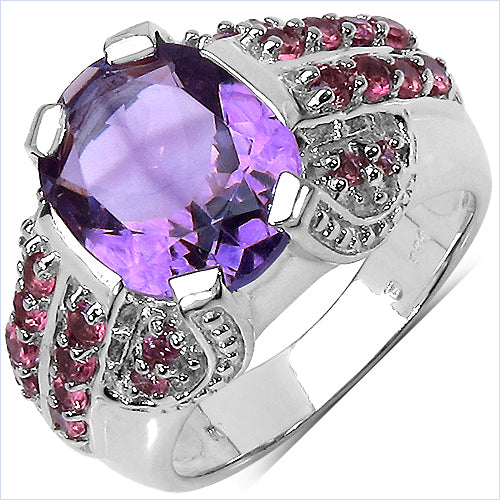5.37 Carat Genuine Amethyst & Rhodolite .925 Sterling Silver Ring