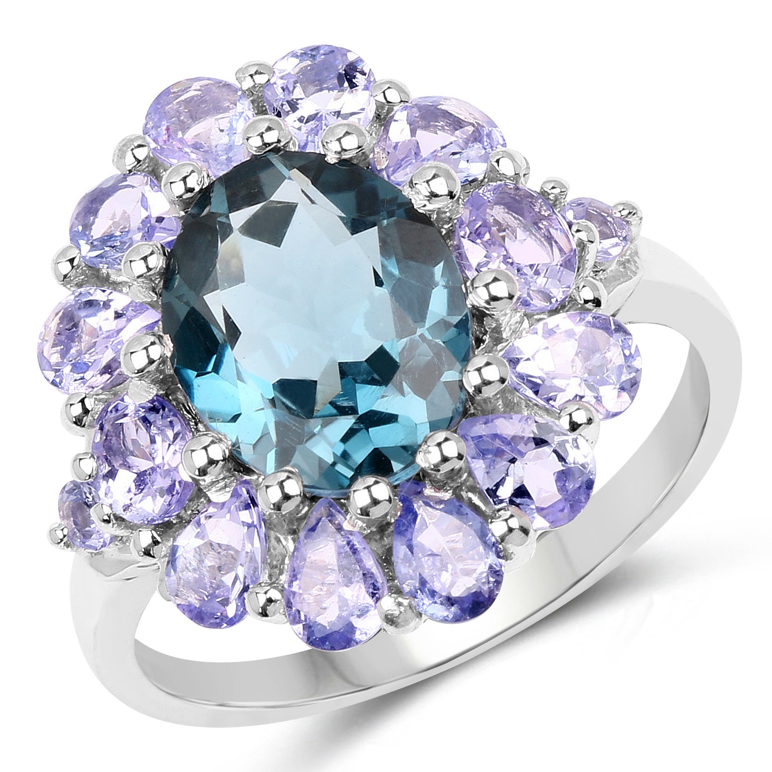 5.41 Carat Genuine London Blue Topaz and Tanzanite .925 Sterling Silver Ring