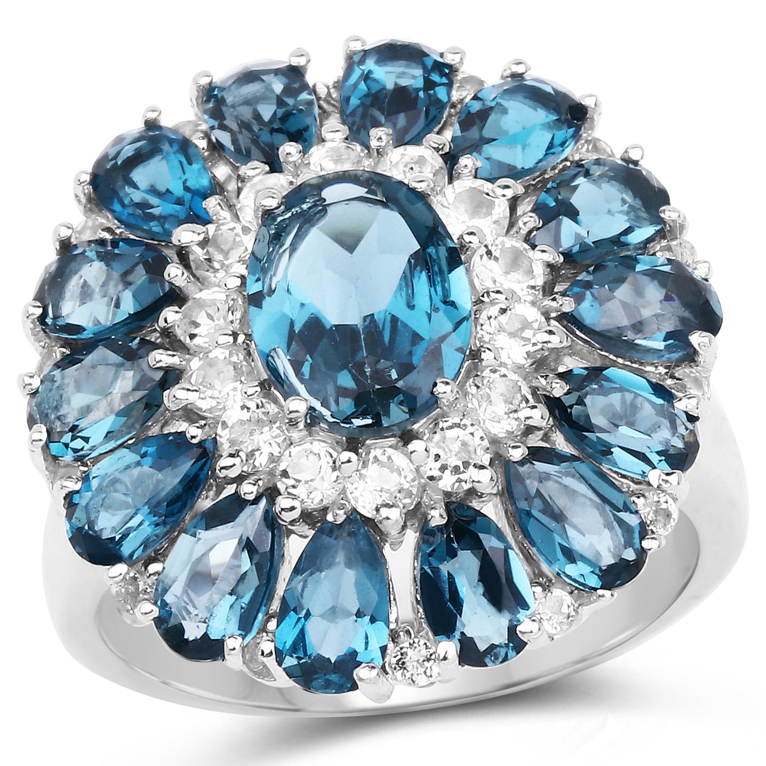 5.44 Carat Genuine London Blue Topaz & White Topaz .925 Sterling Silver Ring