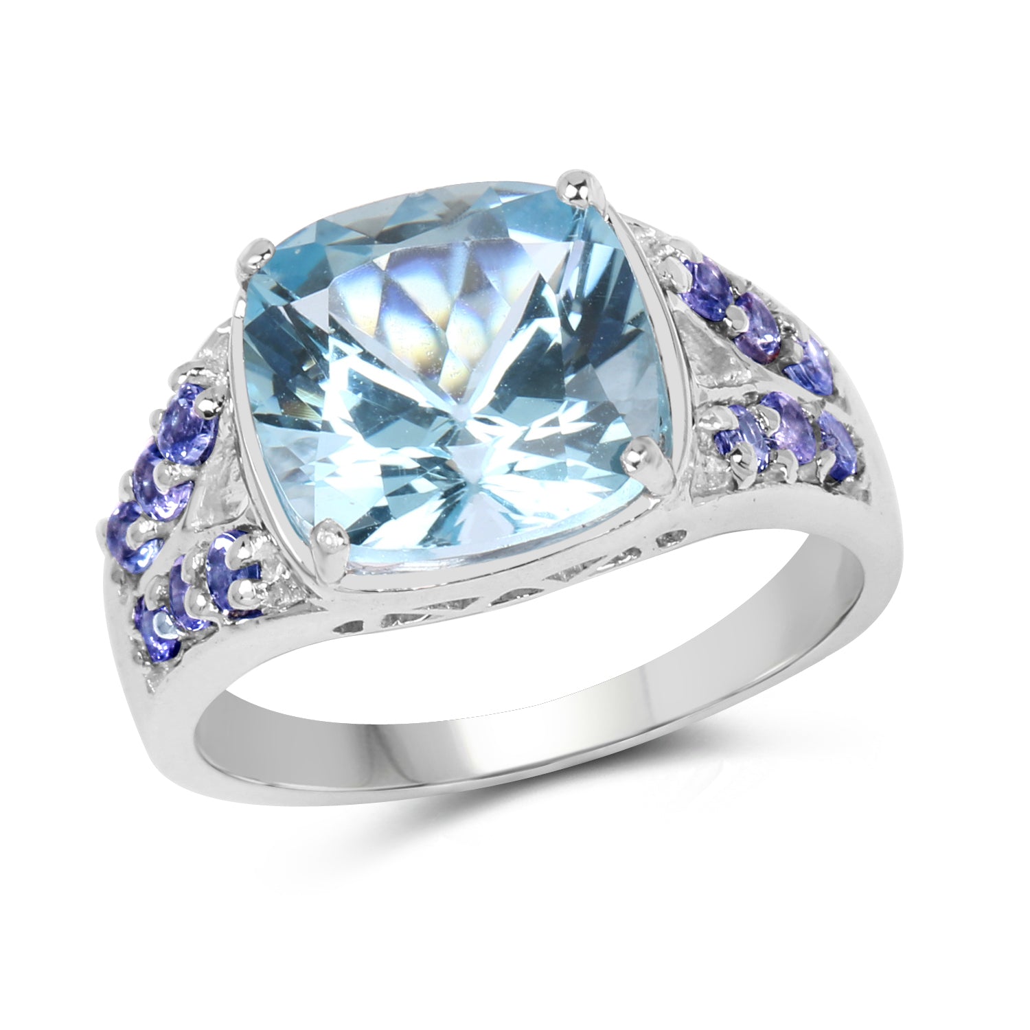 5.53 Carat Genuine Blue Topaz and Tanzanite .925 Sterling Silver Ring
