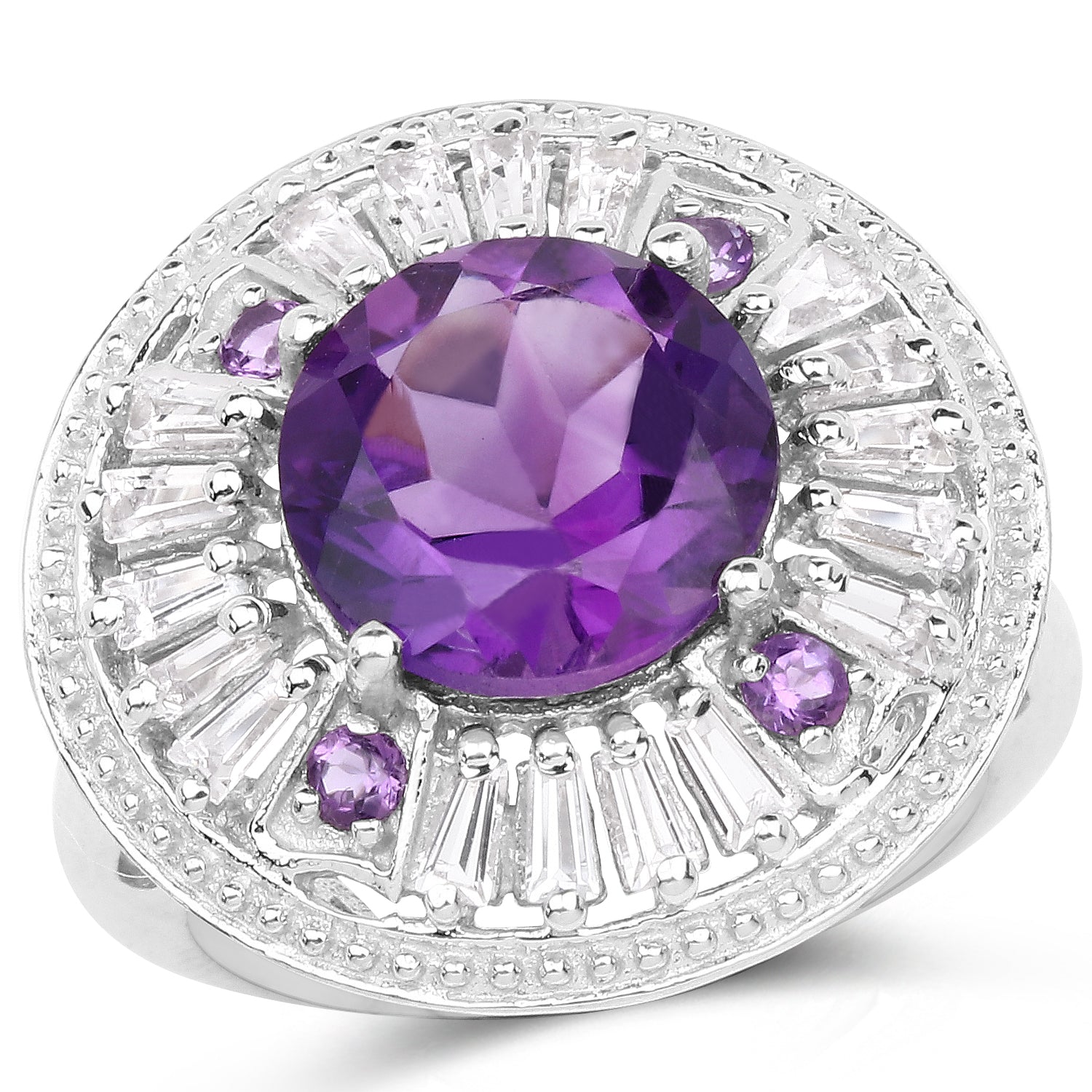 5.58 Carat Genuine Amethyst and White Topaz .925 Sterling Silver Ring