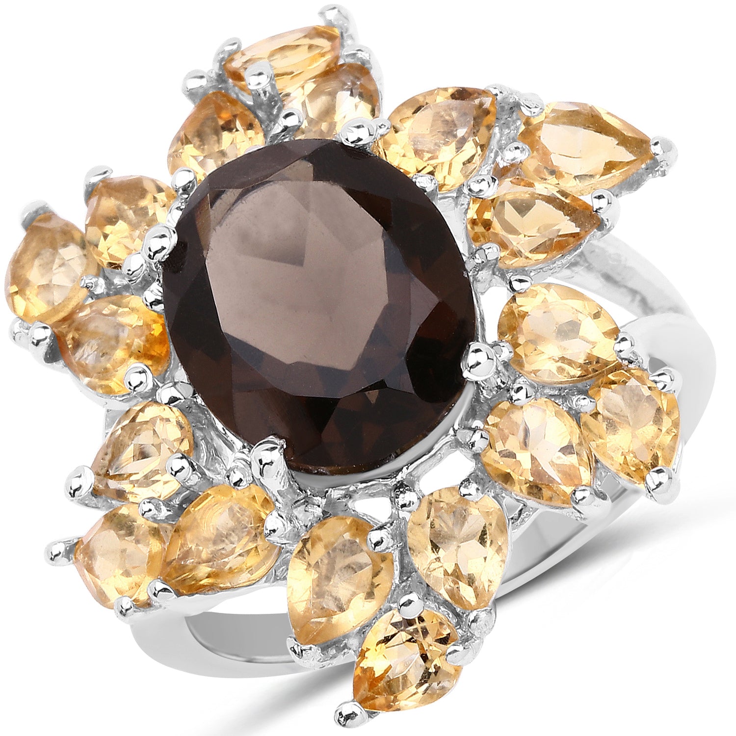 5.87 Carat Genuine Smoky Quartz and Citrine .925 Sterling Silver Ring