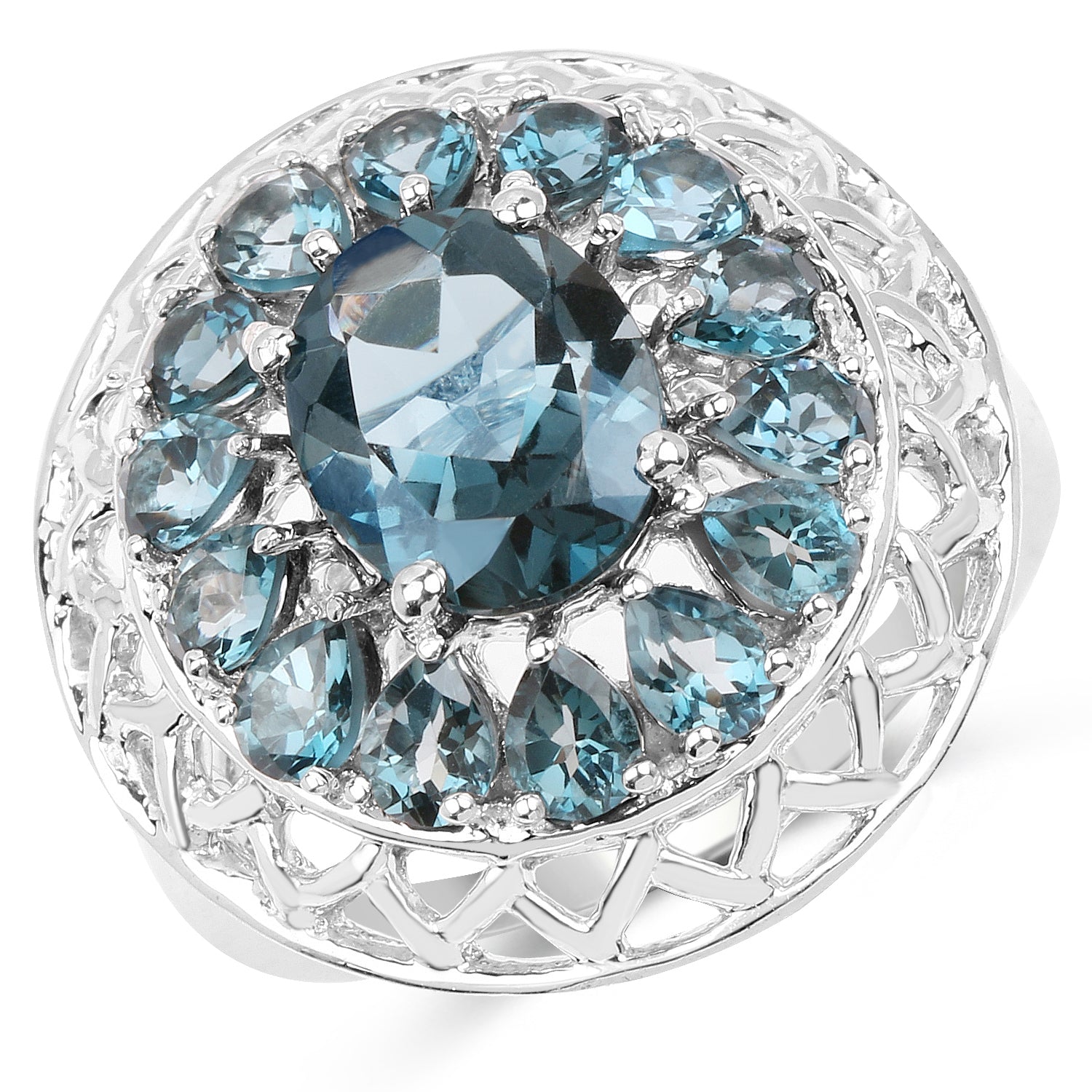5.98 Carat Genuine London Blue Topaz .925 Sterling Silver Ring