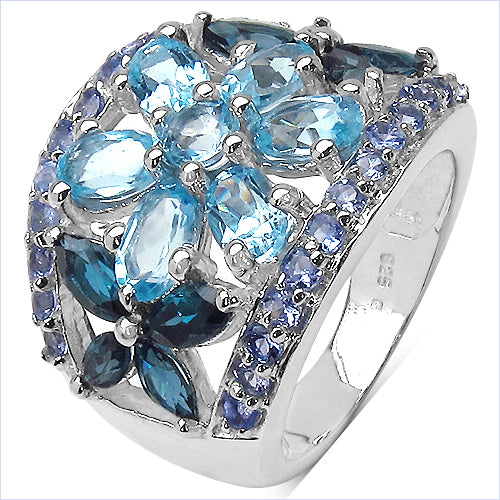 6.06 Carat Genuine Blue Topaz, London Blue Topaz & Tanzanite .925 Sterling Silver Ring