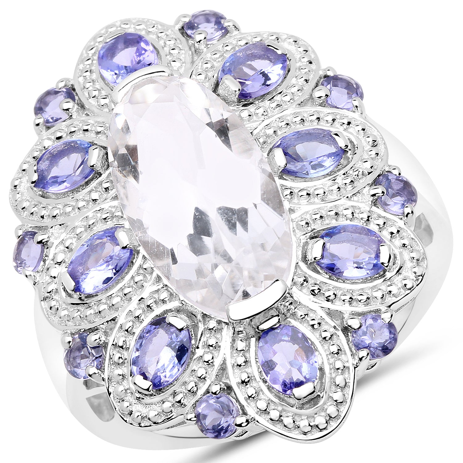 6.09 Carat Genuine Crystal Quartz and Tanzanite .925 Sterling Silver Ring