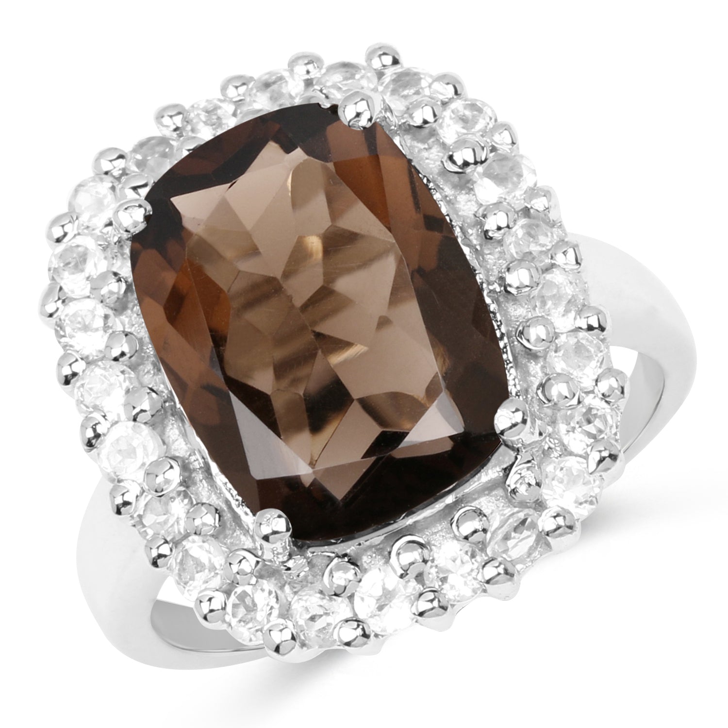 6.44 Carat Genuine Smoky Quartz & White Topaz .925 Sterling Silver Ring