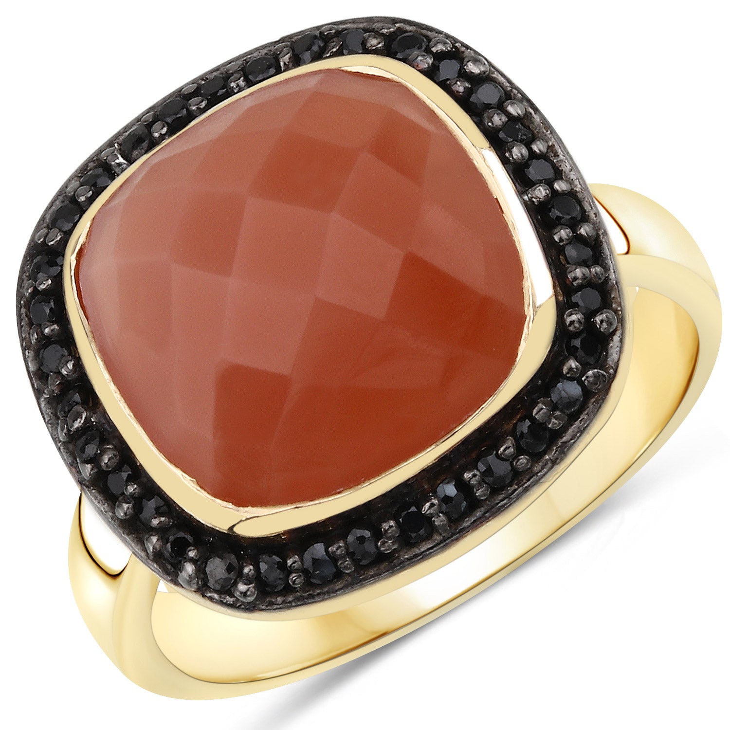 6.74 Carat Genuine Peach Moonstone and Black Spinel .925 Sterling Silver Ring