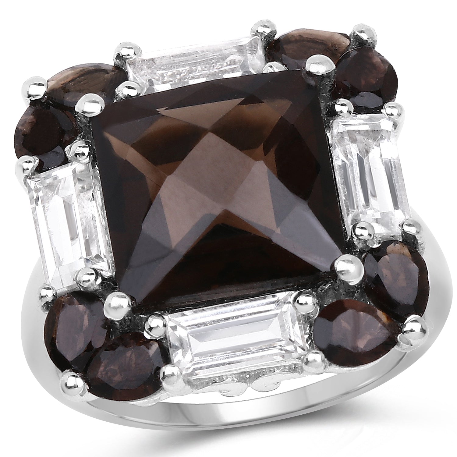 7.43 Carat Genuine Smoky Quartz & White Topaz .925 Sterling Silver Ring