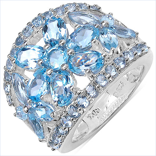 7.57 Carat Genuine Blue Topaz .925 Sterling Silver Ring