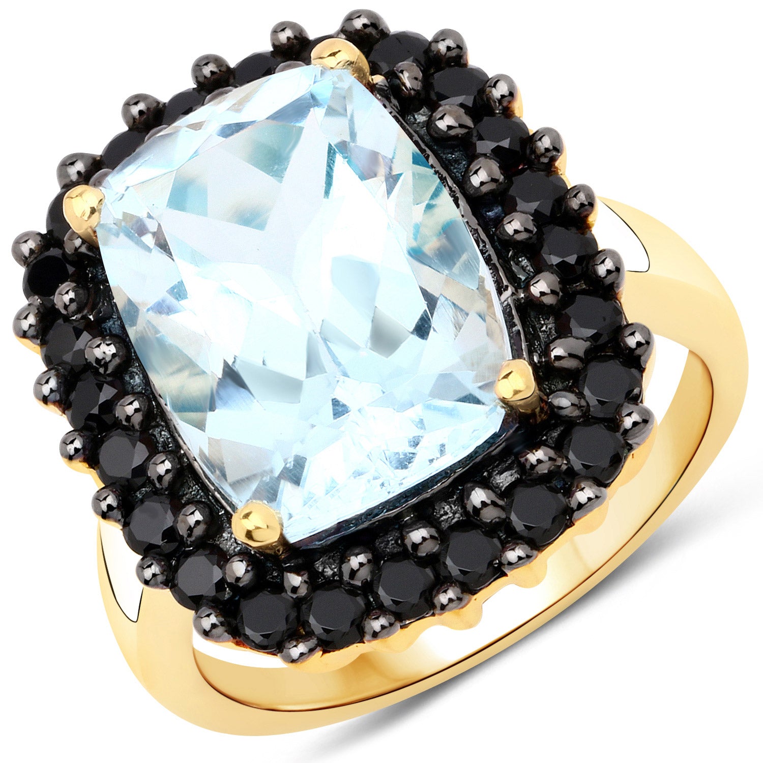 7.66 Carat Genuine Blue Topaz and Black Spinel .925 Sterling Silver Ring