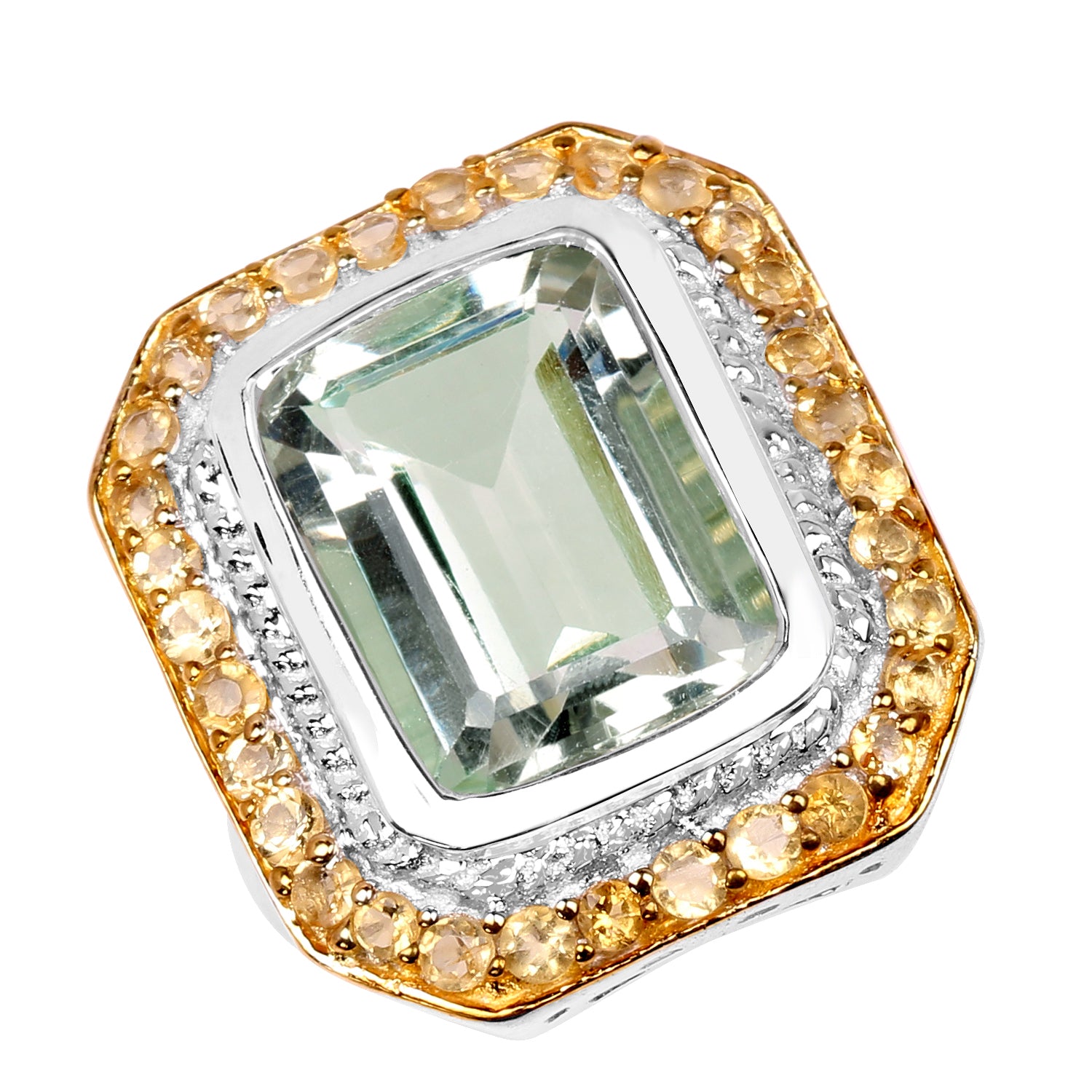 7.96 Carat Genuine Green Amethyst and Citrine .925 Sterling Silver Ring