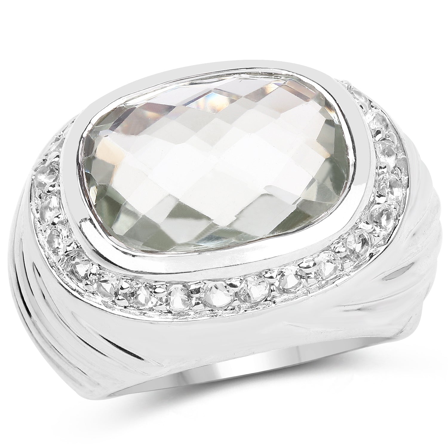8.74 Carat Genuine Green Amethyst and White Topaz Brass Ring
