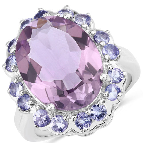 9.32 Carat Genuine Amethyst and Tanzanite .925 Sterling Silver Ring