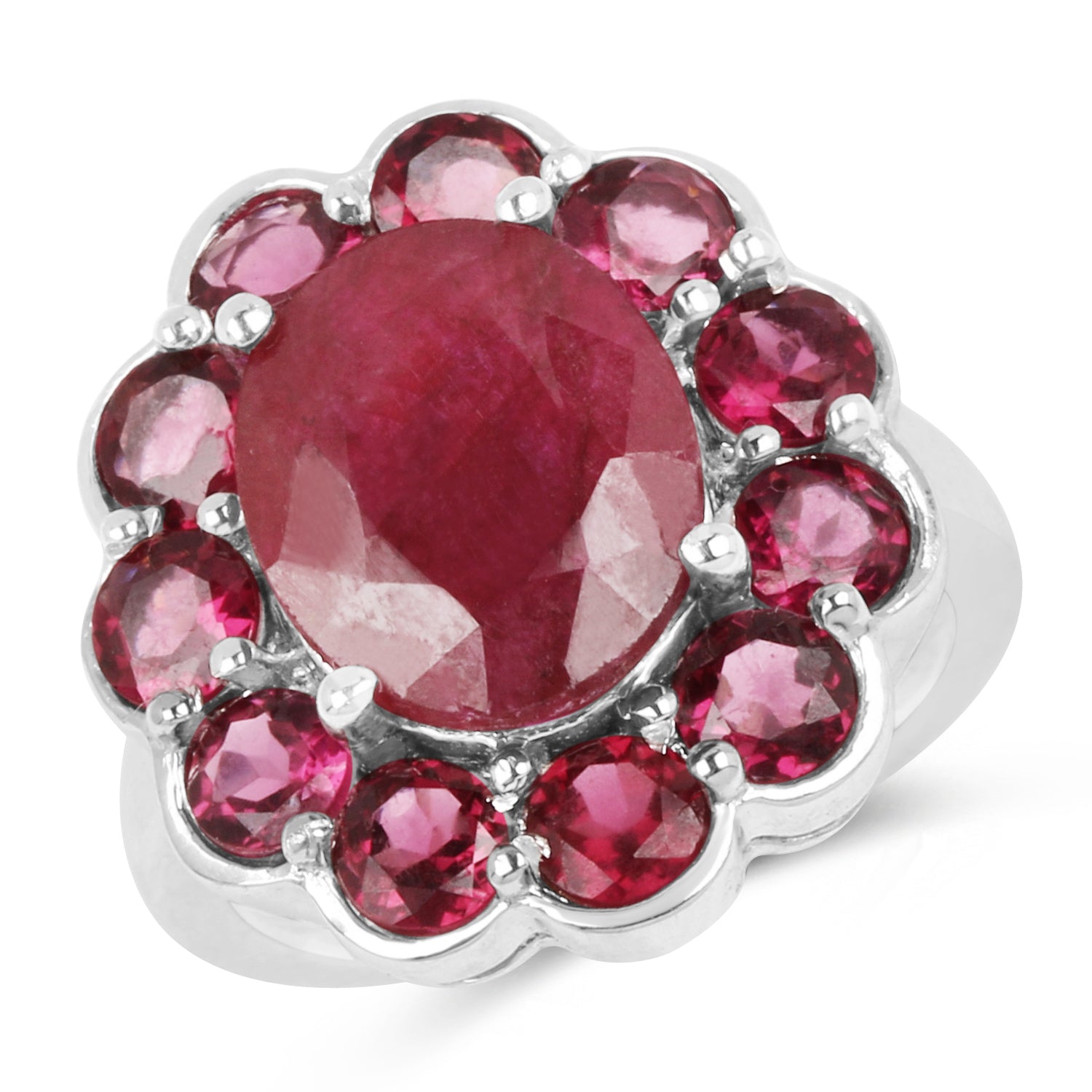 9.34 Carat Genuine Ruby & Rhodolite .925 Sterling Silver Ring