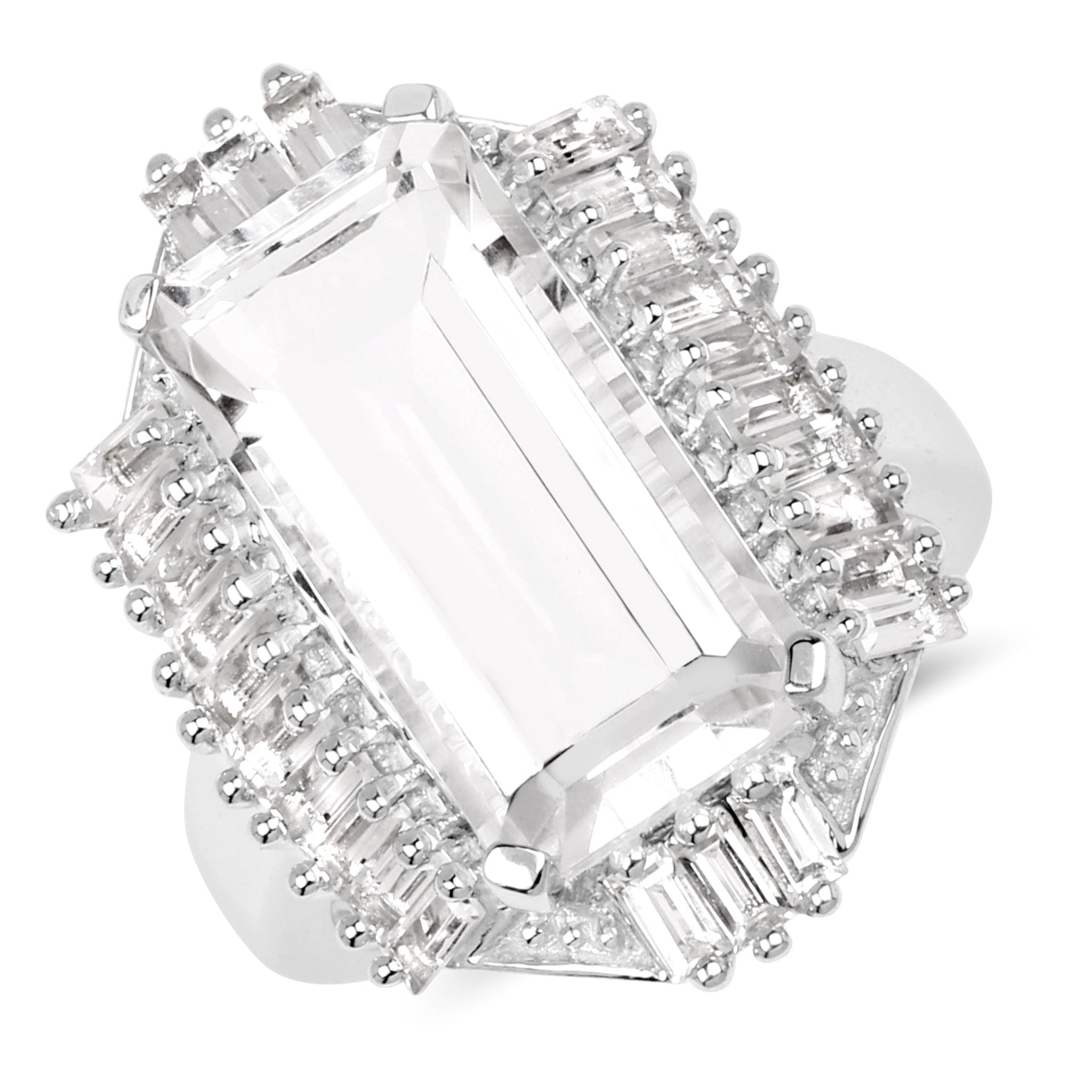 9.77 Carat Genuine Crystal Quartz & White Topaz .925 Sterling Silver Ring Quartz Crystal:Oct.agon/18x9mm 1/7.95 ct.w + Topaz White:Baguette/3.00x1.50mm 26/1.82 ct.w