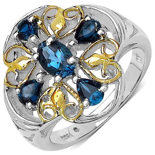 Two Tone Plated 1.45 Carat Genuine London Blue Topaz .925 Sterling Silver Ring