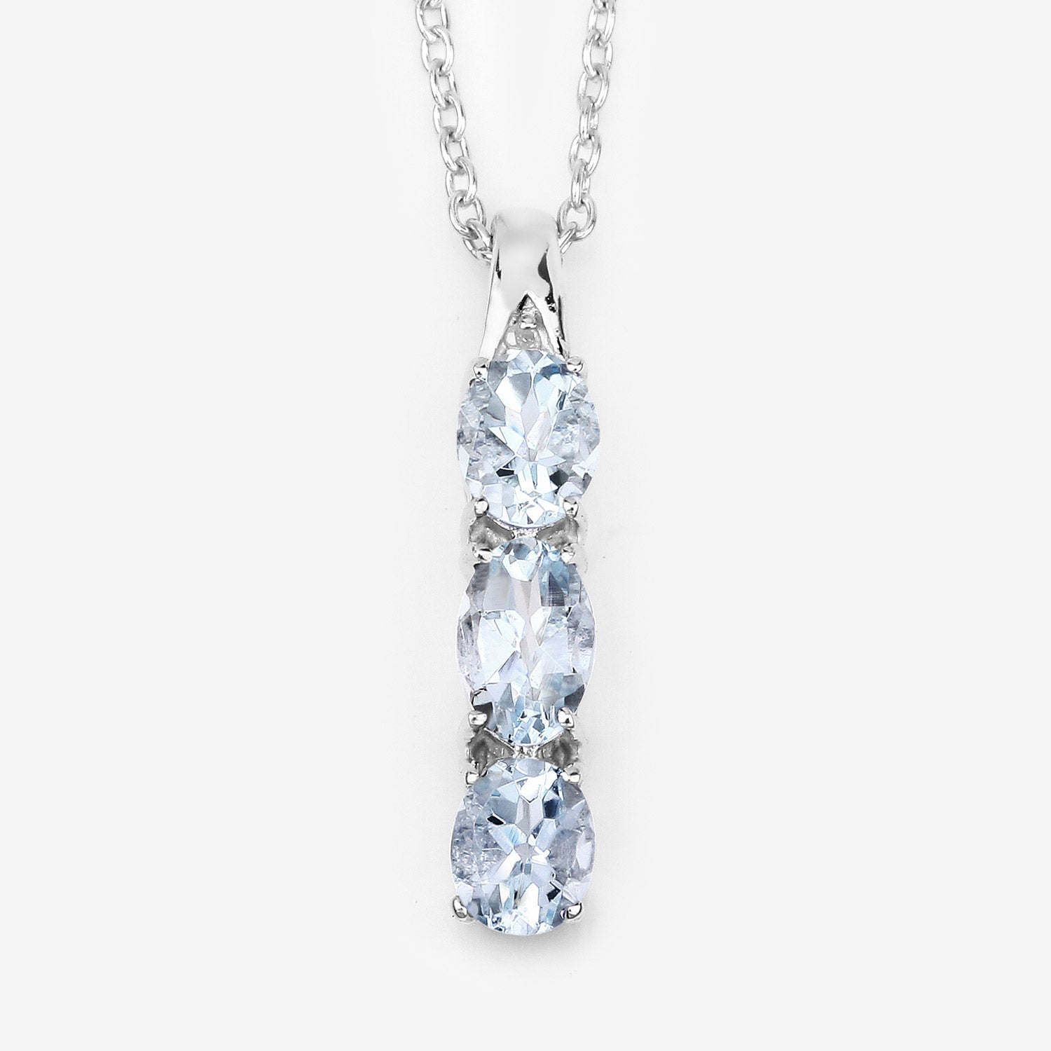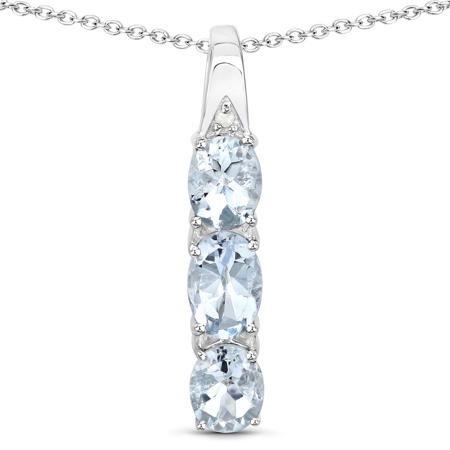 0.95 Carat Genuine Aquamarine and White Diamond .925 Sterling Silver Pendant