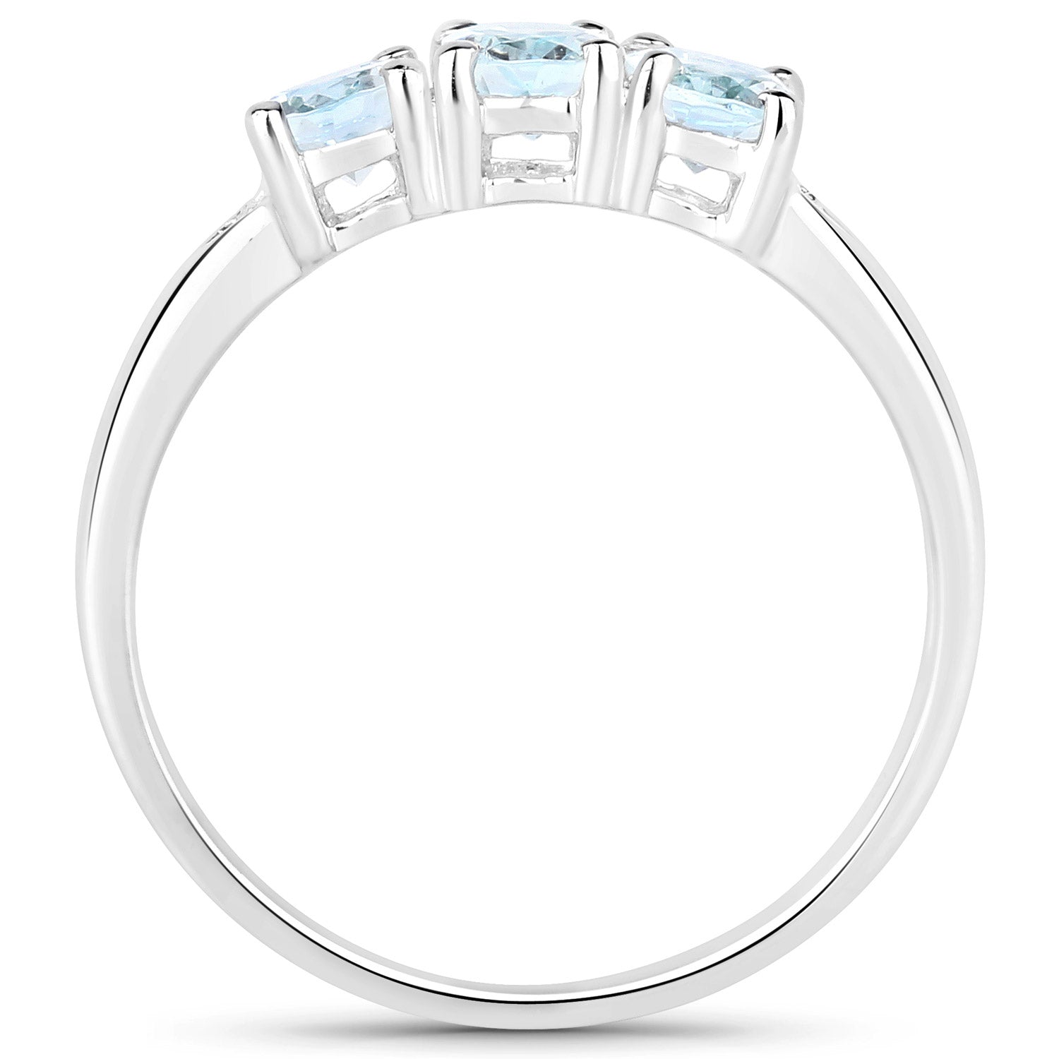 0.95 Carat Genuine Aquamarine and White Diamond .925 Sterling Silver Ring