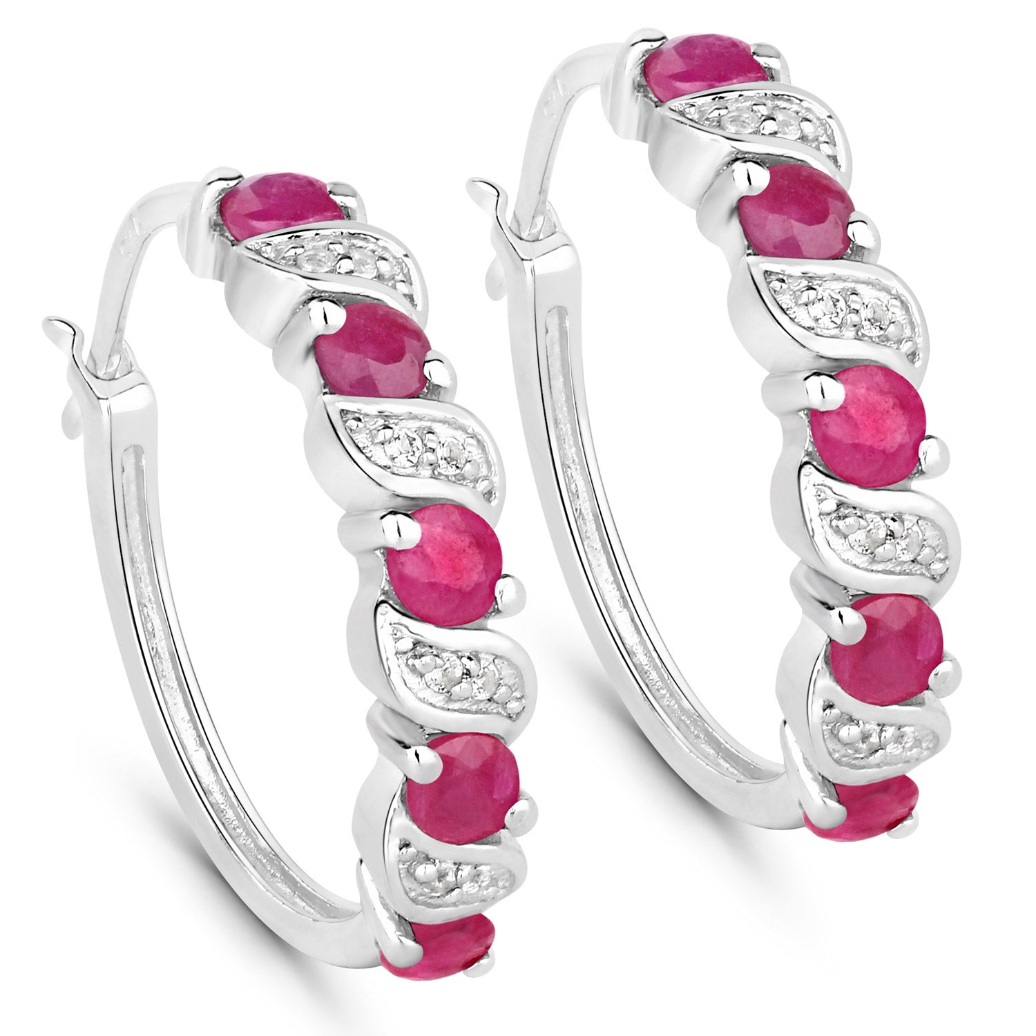 1.38 Carat Genuine Ruby and White Topaz .925 Sterling Silver Earrings Ruby:Round/3.00mm 10/1.30 ctw + Topaz White:Round/1.00mm 16/0.08 ctw
