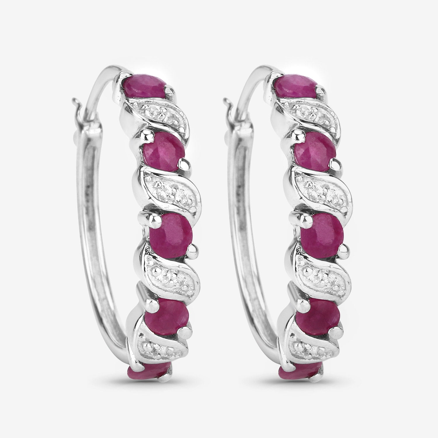1.38 Carat Genuine Ruby and White Topaz .925 Sterling Silver Earrings