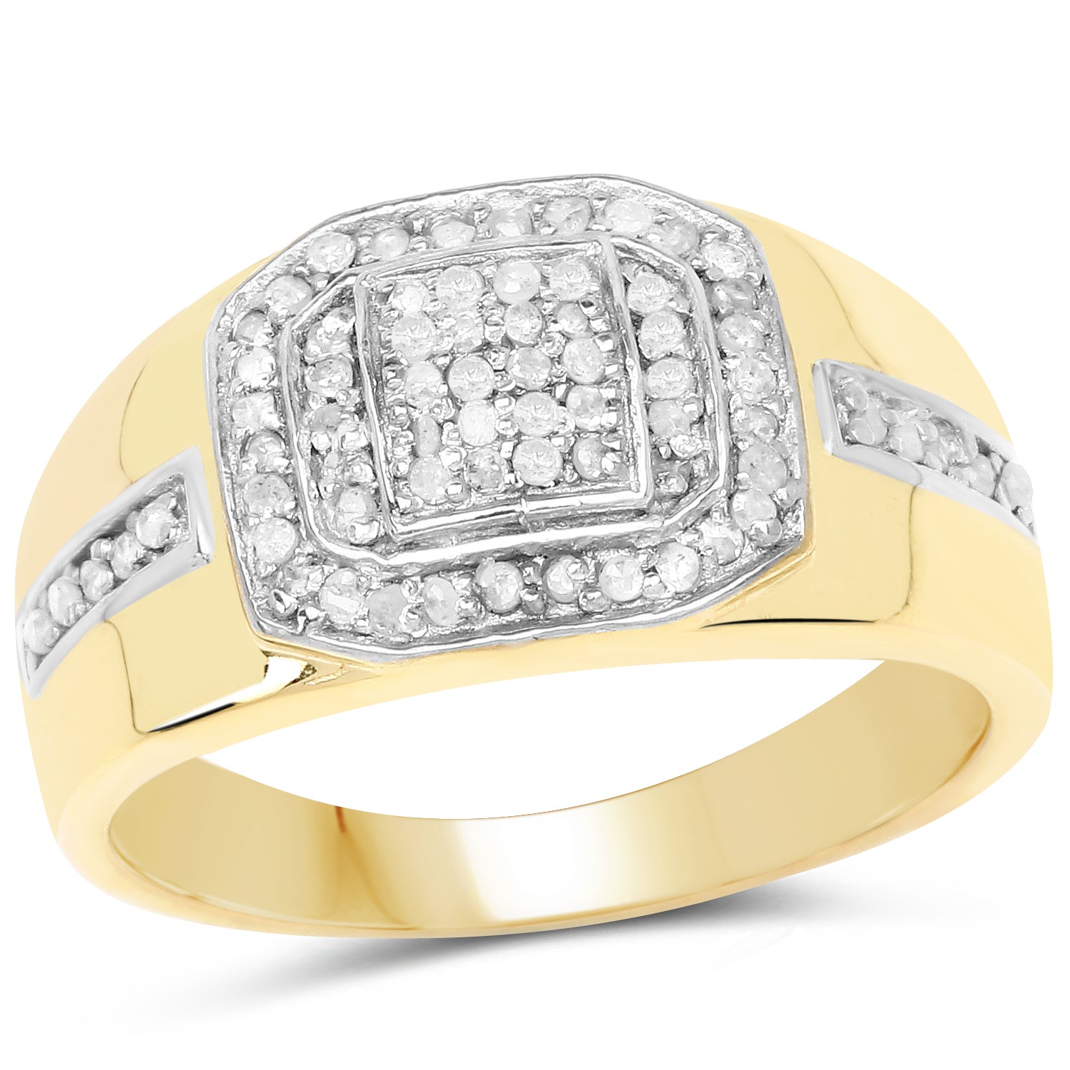 14K Yellow Gold Plated 0.29 ct. Genuine White Diamond .925 Sterling Silver Ring Diamond White:Round/0.90mm 69/0.29 ct.w