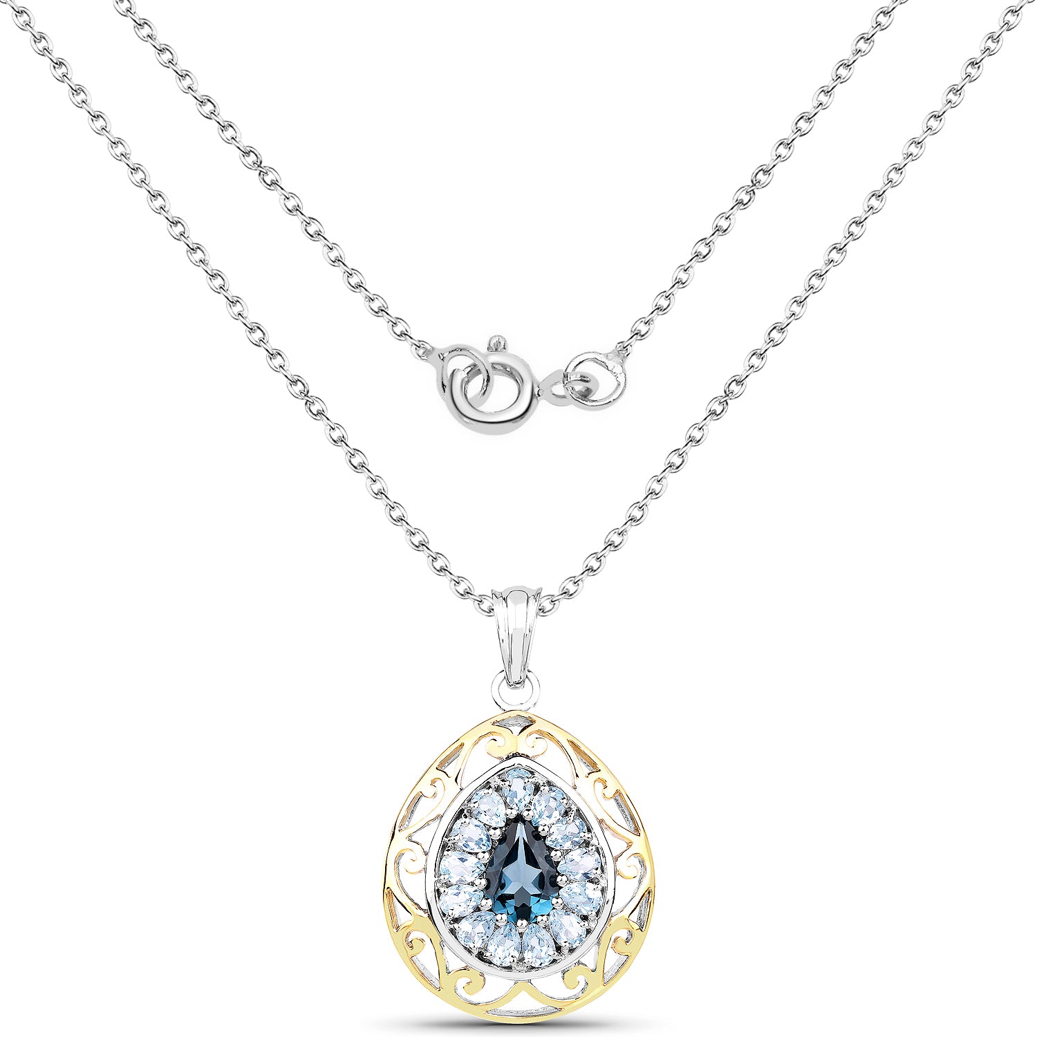 18K Yellow Gold Plate 4.44 Carat Genuine London Blue Topaz & Blue Topaz .925 Sterling Silver Pendant Blue Topaz(London):Pear/10x7mm + Topaz Blue:Pear/4x3mm 13/2.34 ct.w