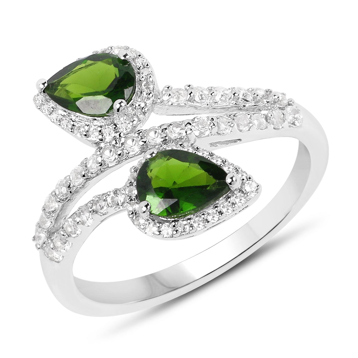 2.24 Carat Genuine Chrome Diopside and White Topaz .925 Sterling Silver Ring