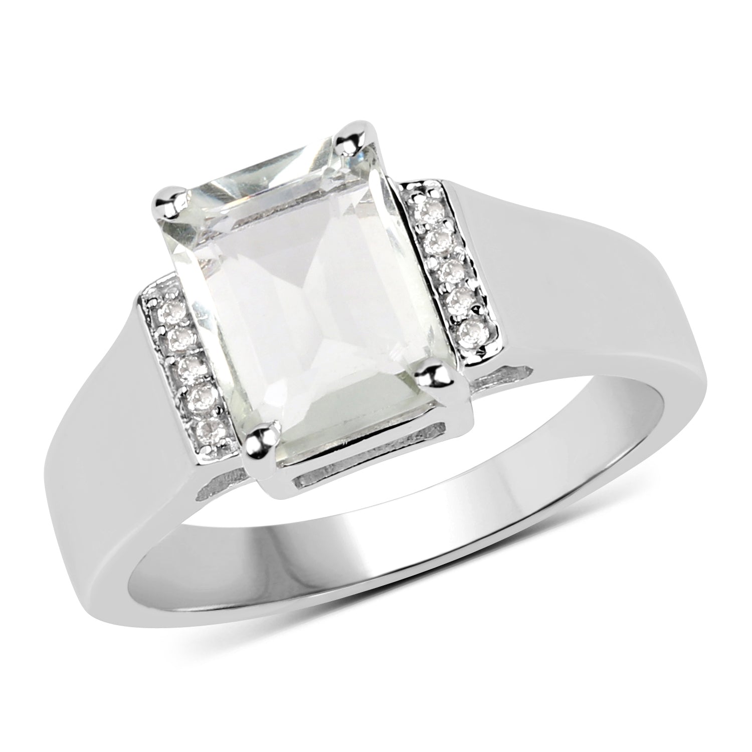 2.25 Carat Genuine Green Amethyst and White Topaz .925 Sterling Silver Ring Amethyst Green:Oct.agon/9x7mm 1/2.20 ct.w + Topaz White:Round/0.90mm 10/0.05 ct.w