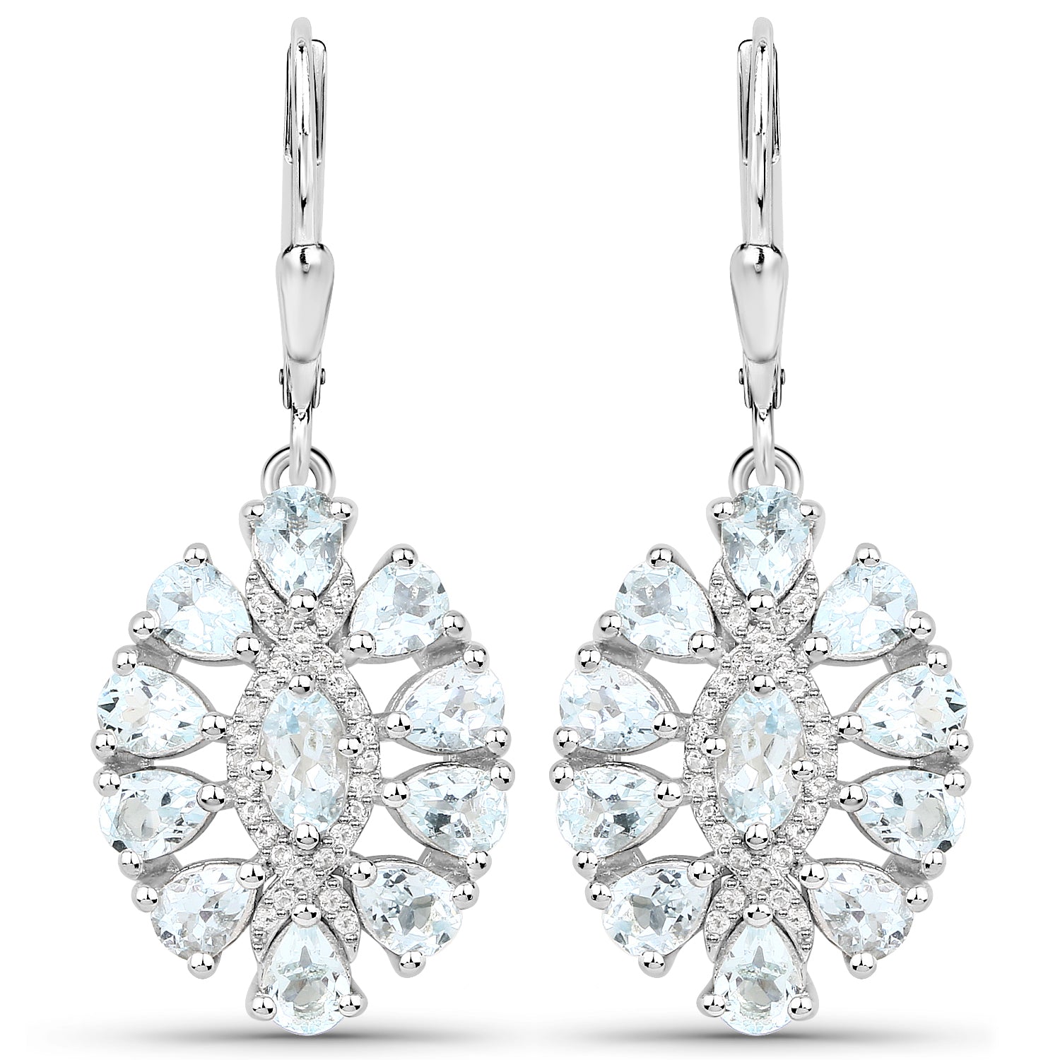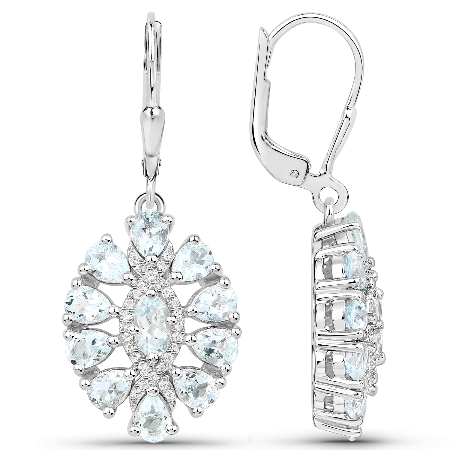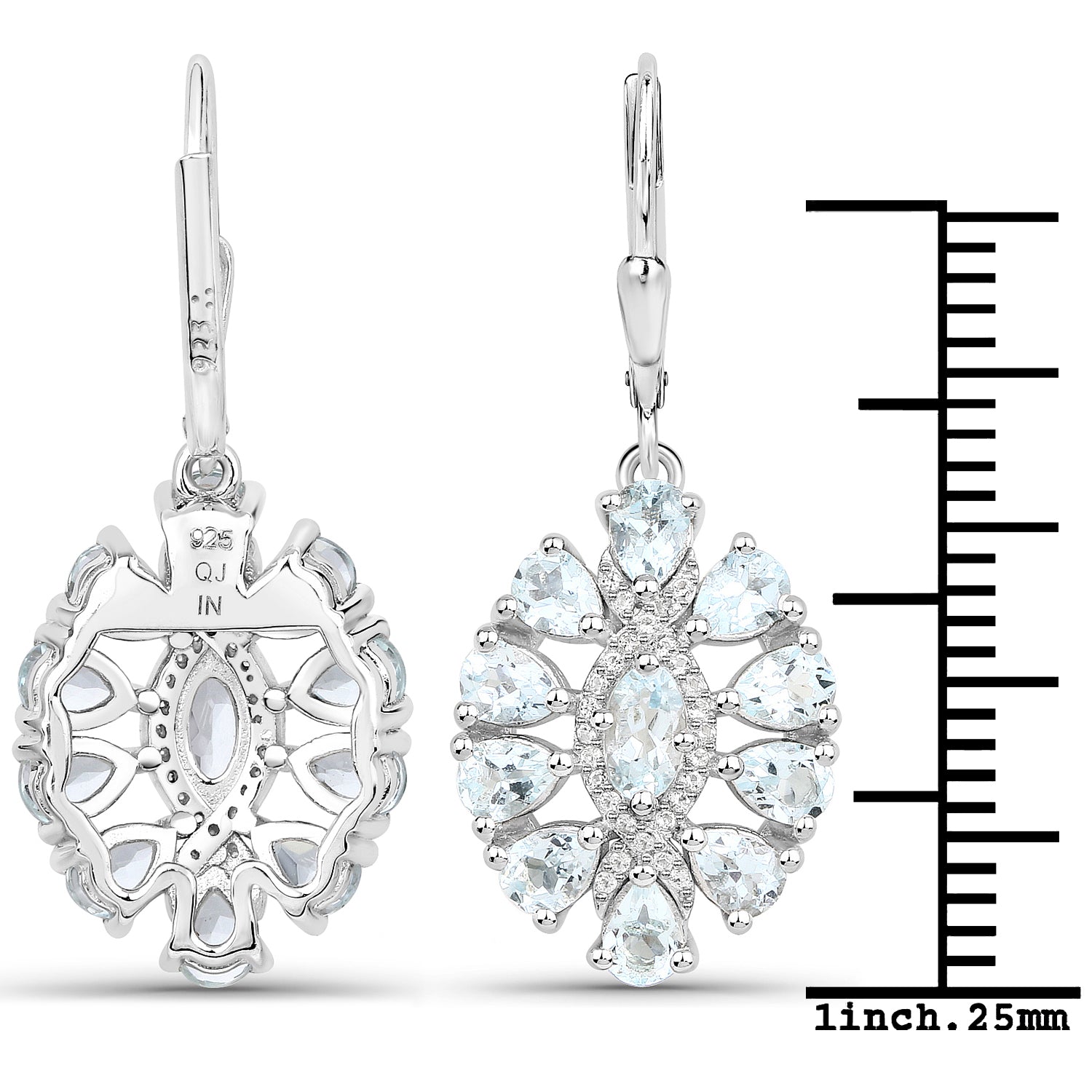 2.93 Carat Genuine Aquamarine and White Topaz .925 Sterling Silver Earrings
