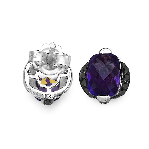3.14 Carat Genuine Amethyst & Black Diamond .925 Sterling Silver Earrings