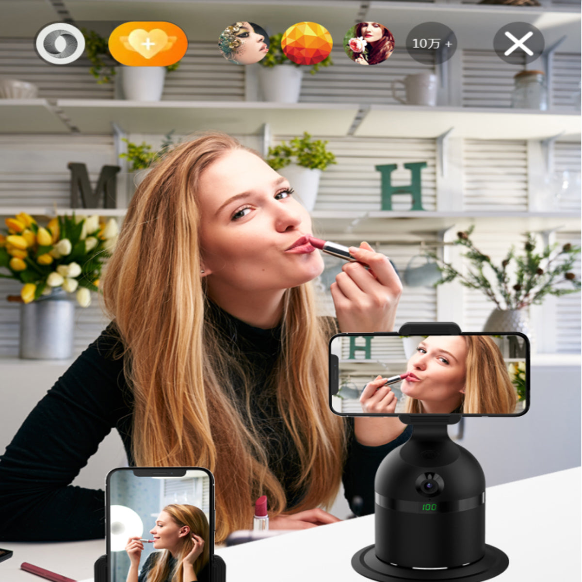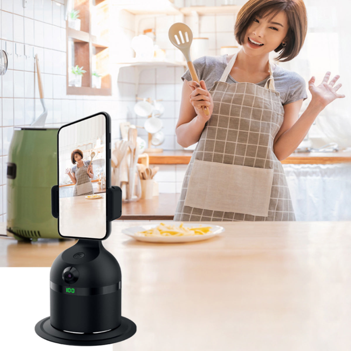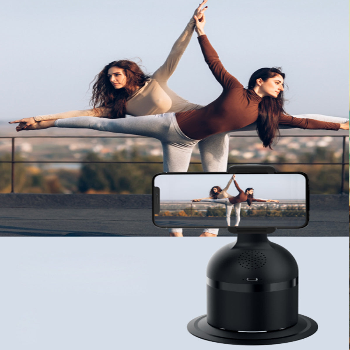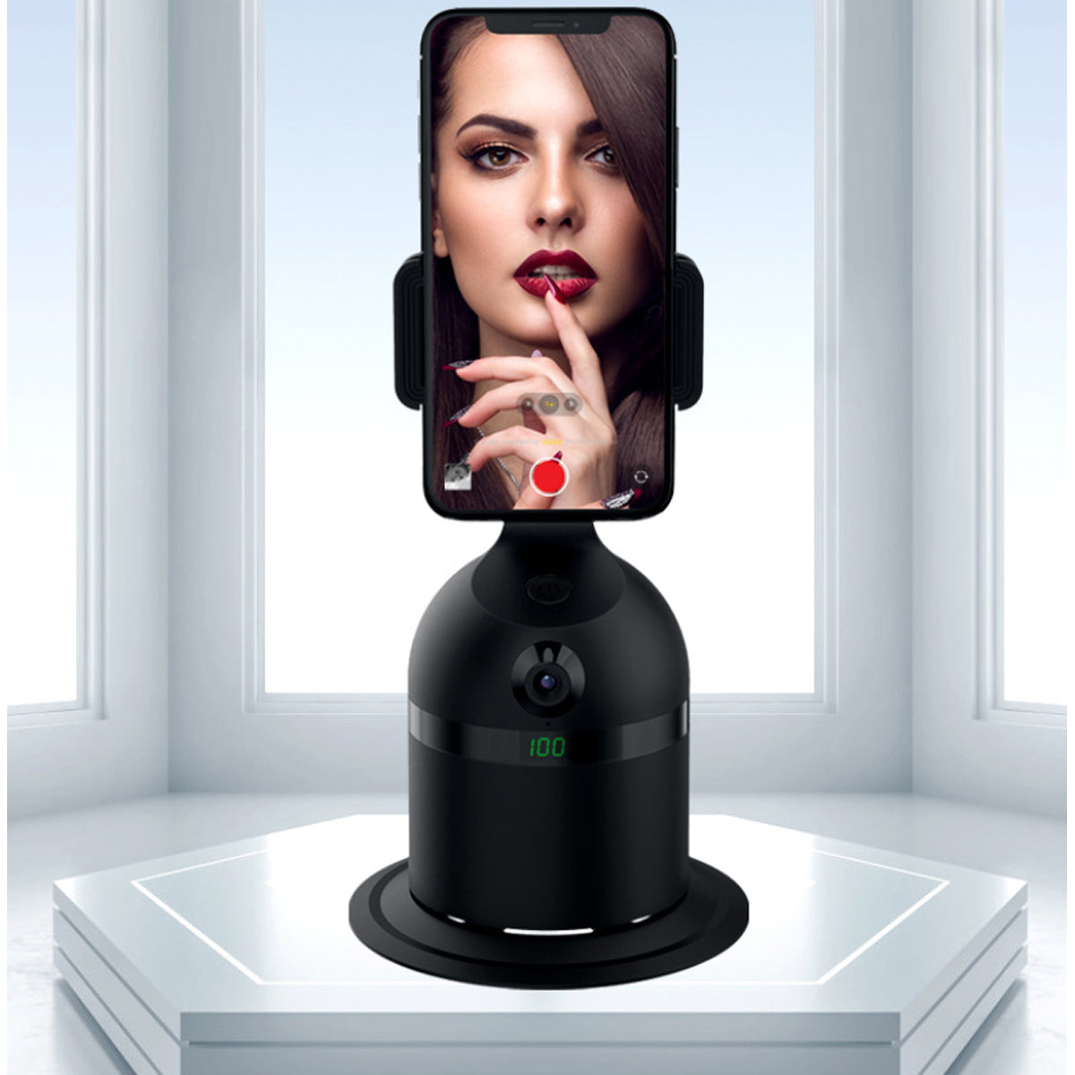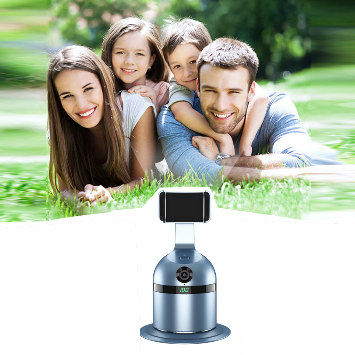 Equipped with a built-in AI(artificial intelligence) technology-based face recognition feature, as well as a 360 motion detector. This 3-in-1 animated videographer stand holds your mobile phone and lets you take videos and pictures totally hands-free. It follows your movements and always keeps you in the frame. You can control it up to 30 feet away via a remote control that can start and stop the action for you at any time.