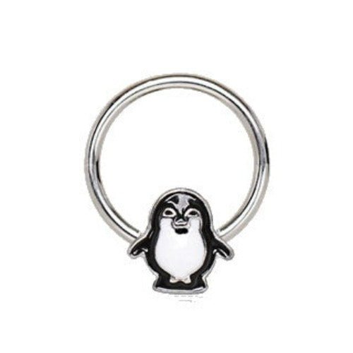 316L Stainless Penguin Snap-in Captive Bead Ring / Septum Ring by Fashion Hut Jewelry