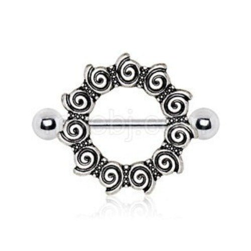 316L Stainless Steel Antique Tribal Multi-Spiral Nipple Shield by Fashion Hut Jewelry