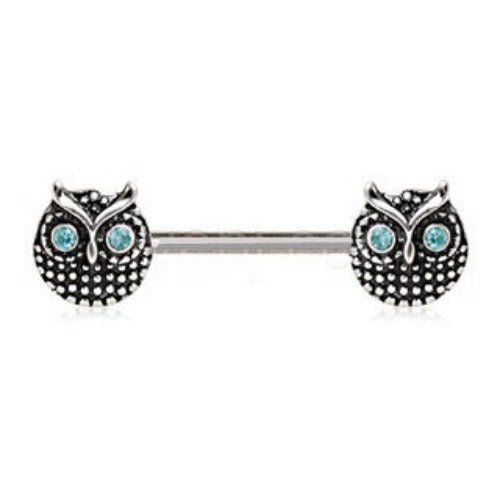 • Nipple Bar / Nipple Ring with Owl Design• Light Blue CZ on the eyes of owl