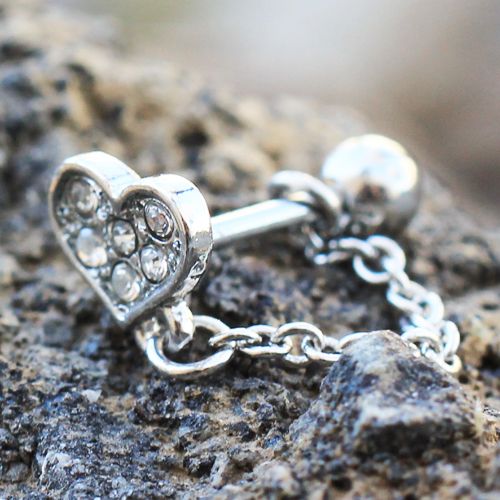 Fulfilled by our friends at Fashion Hut Jewelry• Cartilage / Tragus Ring with Clear Gemmed Heart and Short Chain• 6 Clear CZ on Heart• Unique Design• Barbell Thickness : 16GA | 1.2mm• Barbell Length : 1/4" | 6mm• Chain Length : 10mm • Material : 316L Stainless Steel, Zinc Alloy, Cubic...