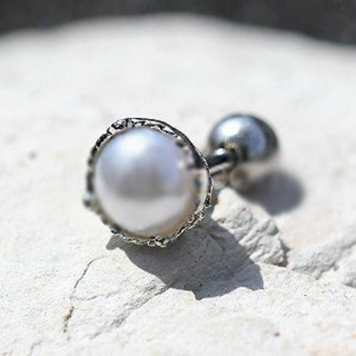 316L Stainless Steel Crown Pearl Cartilage Earring This cartilage earring is absolutely adorable, pure elegance, and glamour. This jewelry is crafted out of the highest quality implant grade 316L stainless steel with faux pearl at center warped around in a crown design. • Offers comfortable fit without compromising fashion • Perfect for everyday wear • Features a pearl ball set on crown • Piercing Type: Cartilage | Tragus • Thickness: 16GA | 1.2mm • Length : 1/4" | 6mm • Color : White Pearl • Materials: 316L Stainless steel, Faux Pearl