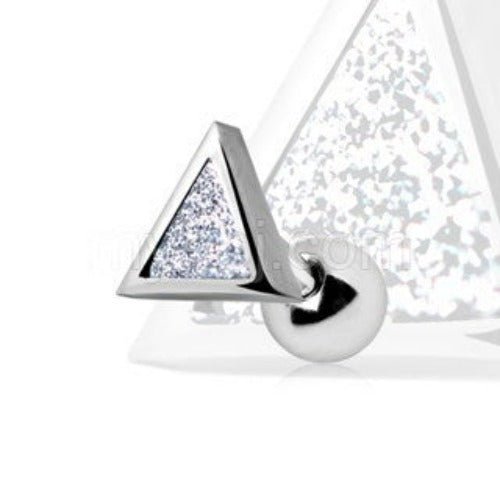 316L Stainless Steel CZ Dust Triangle CartilageSimple yet stylish, this triangle cartilage earring is sure to make an impression. This unique jewelry is crafted from high quality 316L Surgical Steel and inlaid with Clear Cubic Zirconia Dust at its core giving this triangle a brilliant glow. Make sure to get yours before they’re gone.