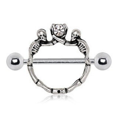 • Nipple Shield / Nipple Ring with Skeleton Design• Two (2) Skeletons holding a Clear CZ together