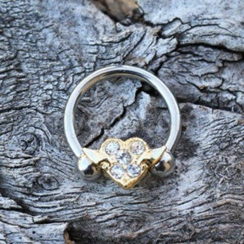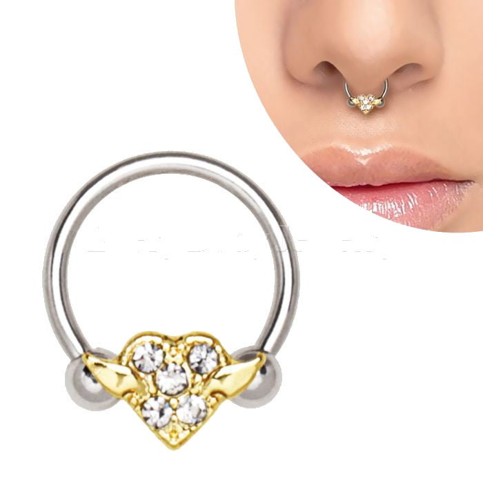 316L Stainless Steel Gold Plated Heart Snap-In Captive Bead Ring / Septum Ring by Fashion Hut Jewelry