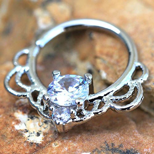 Fulfilled by our friends at Fashion Hut Jewelry• Ornate, filigree design with a Clear CZ on prong set• Filigree design looks like a beautiful draped lace embracing the Clear CZ• Annealed ring is easy to open and close• Ring Thickness : 16GA | 1.2mm• Ring Inner Diameter : 3/8" |...