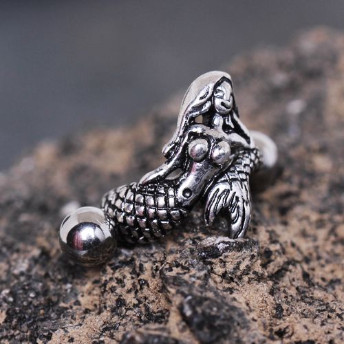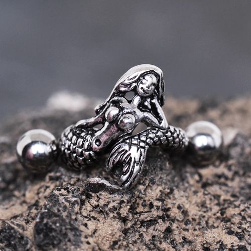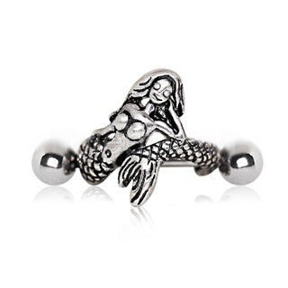 Fulfilled by our friends at Fashion Hut Jewelry• Cartilage Cuff Earring with a Mermaid Design• Detailed Mermaid design• Jewelry is partially plated in Black for a contrast• Barbell Thickness : 16GA | 1.2mm• Barbell Length : 1/2" | 12mm• Cuff Size : 12 x 11mm• Material : 316L Stainless Steel,...