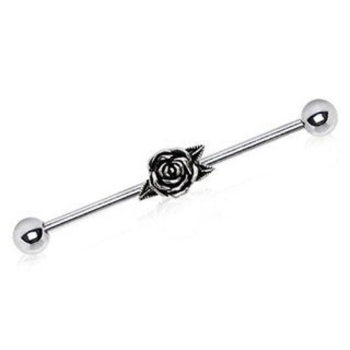 316L Stainless Steel Metal Rose Industrial Barbell by Fashion Hut Jewelry