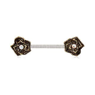 • Nipple Barbell / Nipple Jewelry with antique gold plated flower design• The flower is plated in antique gold