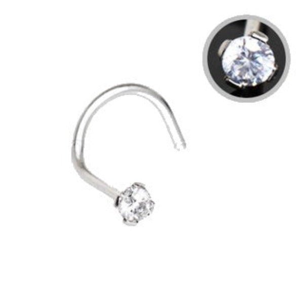 • 316L Stainless Steel Screw Nose Ring• 2mm Clear round CZ