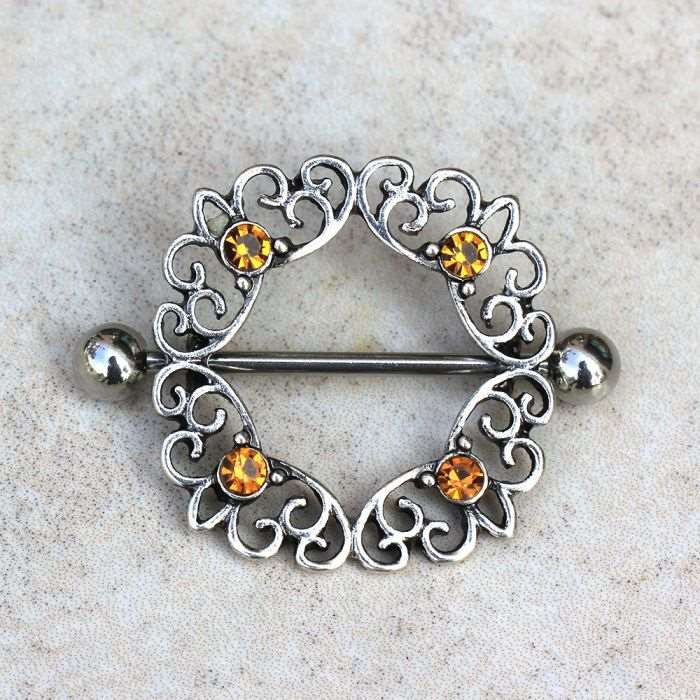 316L Stainless Steel Topaz Ornate Nipple Shield by Fashion Hut Jewelry