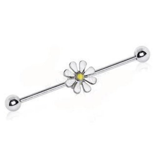 • 316L Stainless Steel Industrial Barbell with Daisy Design• Jewelry is decorated with a White Daisy Flower