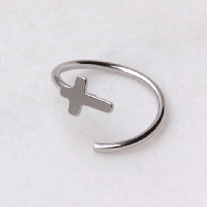 Wear nose hoop jewelry and switch it up with dainty décor. Crafted out of the highest quality 316L Surgical Steel this classic Nose Hoop features a sweet little Cross motif in polished metal, plainly elegant. Available in an easily adjustable annealed design for easy wear.